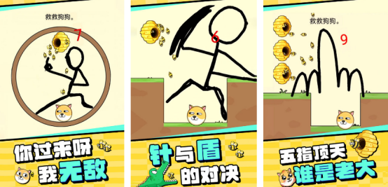 以解谜闯关为主线,共设数十个原创关卡,每关需通过划线路径、障碍规避、时机判断等方式营救被困狗狗。例如避开蜜蜂区域、引导角色绕过陷阱、利用物理机关开启通路等,谜题设计强调空间逻辑与动态预判能力。