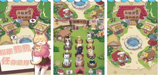 结合放置与合成机制,在宠物商店场景中实现等级递进式收集。滑动连接两只同级狗狗即可合成更高阶品种,每只角色拥有独立性格标签(如活泼、沉稳、贪吃),累计收集可组建完整犬类图鉴体系。