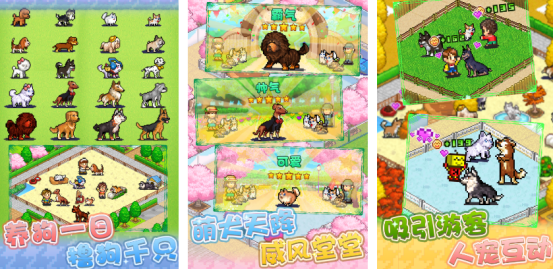 采用复古像素美术风格,构建模拟经营玩法。玩家需引进不同名贵犬种、规划园区设施、提升服务评级,通过出售幼犬获取金币,持续扩建场地规模与功能分区,打造个性化狗狗主题乐园。