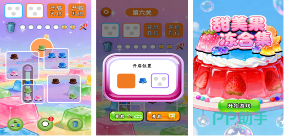 采用高弹性物理动效呈现Q弹果冻,上百关卡按难度梯度递进。基础规则为点击相邻同色果冻实现消除,连击可触发果汁喷溅特效与额外积分。无体力限制、无强制广告,纯粹依靠关卡设计维持长期可玩性。