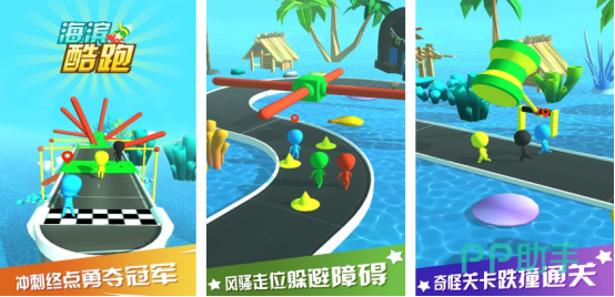 以滨海栈道、灯塔礁石、游艇码头为赛道场景,主角需连续跳跃、滑铲、腾空翻越障碍物。操作仅需点按与长按两种指令,适配单手握持习惯。金币散布于路径两侧,收集后可用于解锁新角色皮肤与加速道具,强化长期目标感。