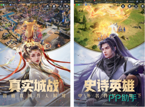 以国战为核心玩法,采用国潮风格美术体系,还原汉末市井风貌与恢弘古战场。支持万人同图实时跨服征战,包含封地经营、阵营结盟、名将羁绊养成等多元成长线。玩家可通过差异化武将组合与动态战略部署,在群雄割据格局中书写专属史诗。