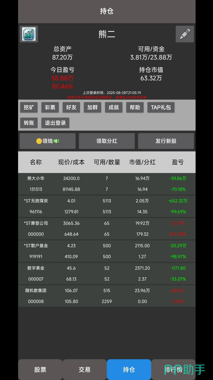 创新融合家庭经营玩法,玩家需通过稳健的股票操作提升家庭资产等级与生活品质。每支标的均拥有独立演算的股价运行曲线,支持回溯复盘与规律比对;游戏中设有市场干预道具,可在特定条件下调节短期波动,配合阶段性经营目标达成,助力玩家逐步成长为具备综合决策能力的投资人。