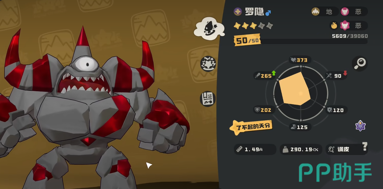 从种族值维度来看,罗隐总和为619,属于当前版本中梯队靠前的高数值精灵。其中物理攻击为最大亮点,数值显著高于同类输出型精灵;生命值设定合理,具备一定承伤能力,避免出现“一碰即碎”的脆皮问题;速度属性处于中等偏上水平,足以应对多数主流节奏对战;双防(防御与特防)虽未重点强化,但与其主攻定位高度契合,并非设计短板。