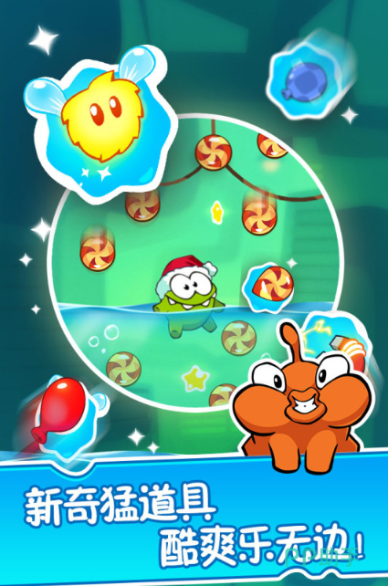 作为物理益智类代表作,本作核心机制围绕“切割绳索”展开:玩家需精准判断切割时机与位置,利用重力、摆动、反弹等物理规律,使糖果落入绿色小怪口中。全作包含数百个独立设计关卡,无重复结构,确保长期可玩性。每日登录可参与随机道具抽取,所获加速器、提示道具等均直接作用于通关效率,降低挫败感,提升正向反馈循环。