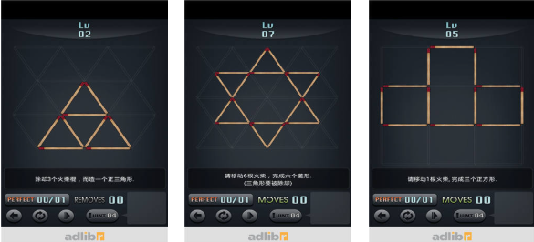 以欧氏几何为解题核心,所有关卡均基于三角形、正方形、菱形等标准图形构建。玩家需通过平移单根火柴,实现图形数量增减(如“用12根火柴摆4个正方形,移动1根变成3个正方形”)、结构重组(如将“田”字拆解为独立四边形)或拓扑关系变更。题目强调空间想象力与逆向推演能力,部分高阶关卡需预判多步移动结果,考验系统性思维水平。