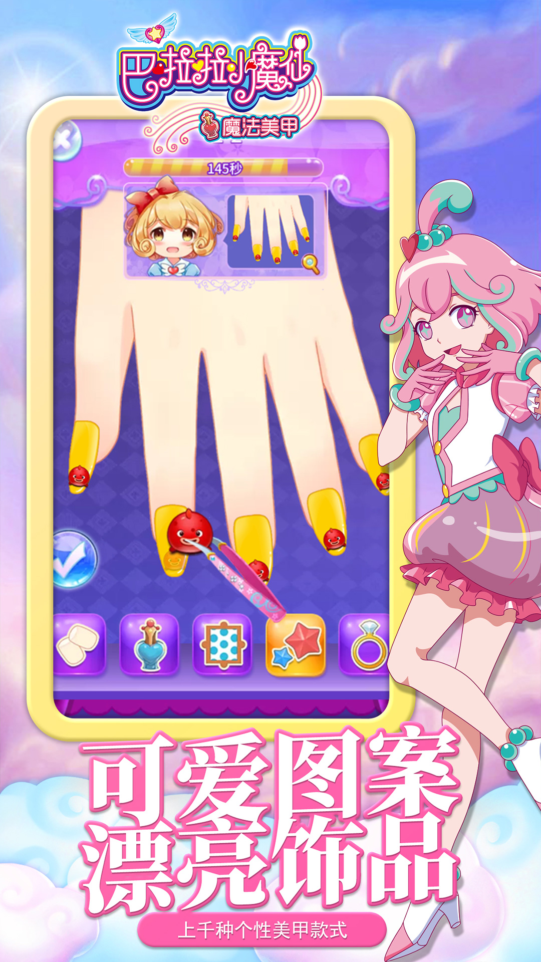 专注指尖美学创作,提供指甲油、水钻、贴纸、雕花笔等真实美甲工具模拟。每关设定差异化主题,如“月光蝶梦”“极光星轨”“糖果旋风”,图案设计严格匹配角色变身色系与性格特征。全部素材开放使用,无付费墙限制,支持保存作品并生成专属魔法印记分享页。