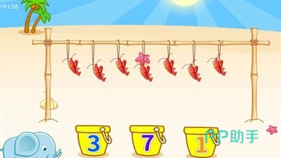 面向学龄前儿童设计,以海底钓鱼为行为动线,自然引入数量对应、一一匹配、大小比较等基础数学概念。钓起不同种类小鱼后,系统引导孩子点数、排序、识别竹竿上鱼的数量关系;完成动作即触发音效、动画与语音鼓励,形成正向激励闭环,巩固早期数理认知。