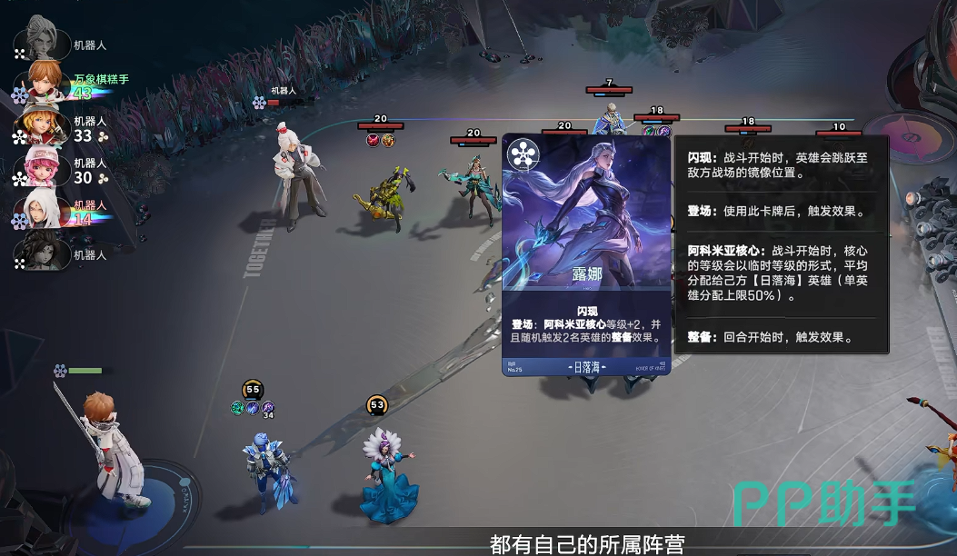 除了英雄技能以外,棋手的技能也是相当重要的,这类技能主要是强化前期的基础战斗力,比如说孙尚香这个棋手,她的优势就在于她具有不错的爆发能力,可以利用自身带的机枪技能对敌人造成爆发伤害,在前中期可以弥补队伍输出不足的缺点,其他棋手也有专属的技能,需要玩家们在对局中灵活更换使用。