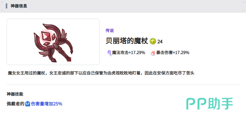 贝丽塔魔杖可以提升一定的攻击能力,不过只能用在魔法类的攻击上,若是爆发伤害的话,那么加成数值也是根据魔法伤害来计算的。