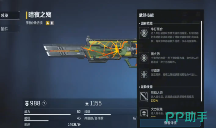 此外,“暗影之伤”作为一把特色手枪,虽基础射程受限,但拥有显著的属性附加机制——每次命中可触发额外元素伤害效果,配合技能协同释放时,能形成可观的复合输出。使用该武器时,需重点提升瞄准稳定性与预判精度,尤其在近距离遭遇战中,高爆发+属性加成组合可快速建立击杀优势。