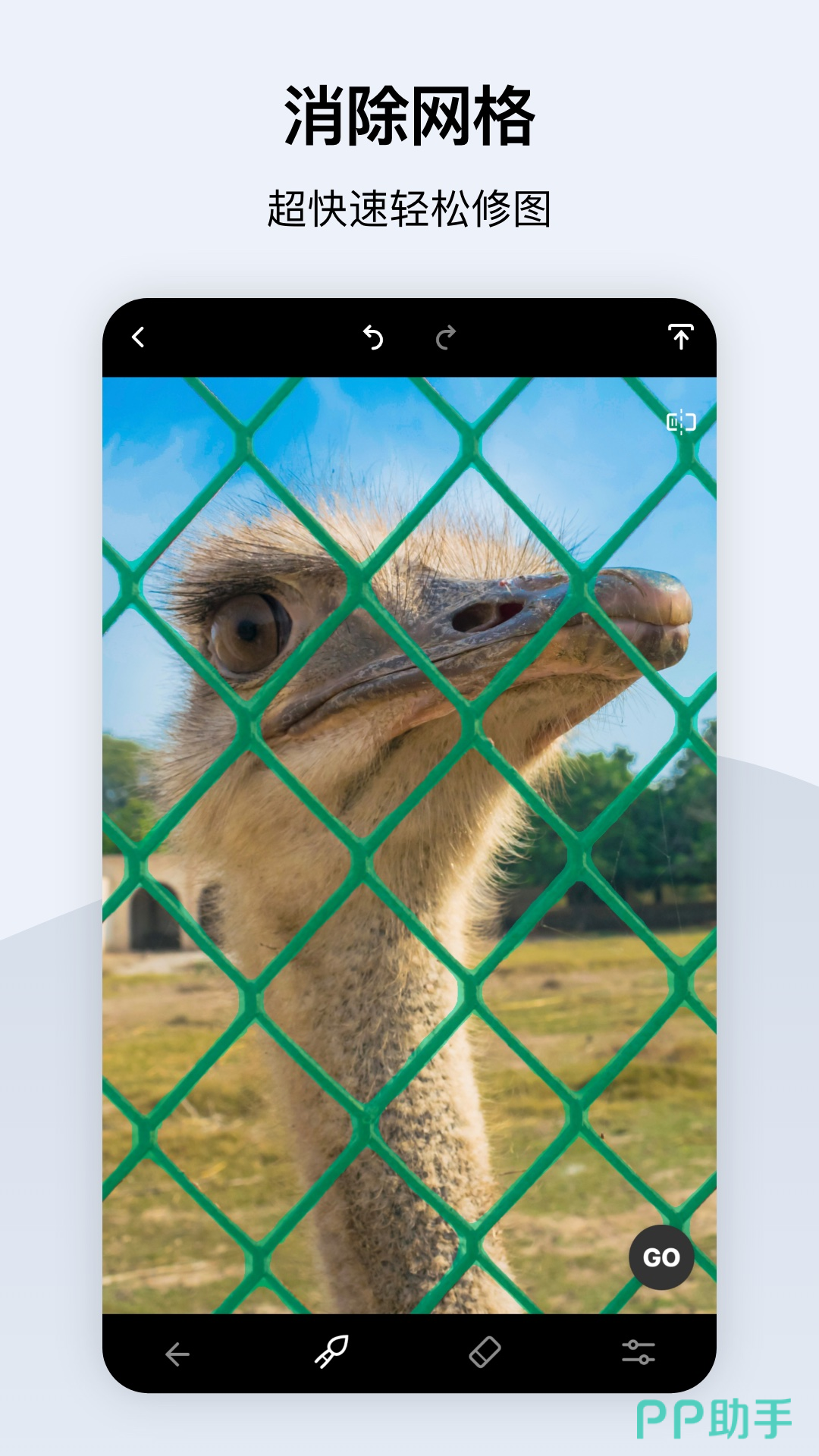 它在P图APP中人气超高,功能优于很多同类软件,其中的去字功能只是它的冰山一角,平时修图时不用切换软件,直接在编辑界面找到“消除”功能,调出消除笔在文字上涂掉就行。遇到小地方需要精细的涂?可以直接缩小笔刷哦!