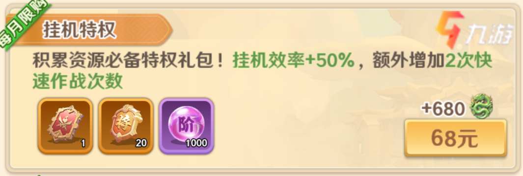 挂机特权:能够多两次资源收益的机会,只要解锁了挂机特权,直接购买即可,能够提前与其他玩家拉开差距。