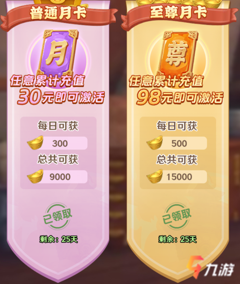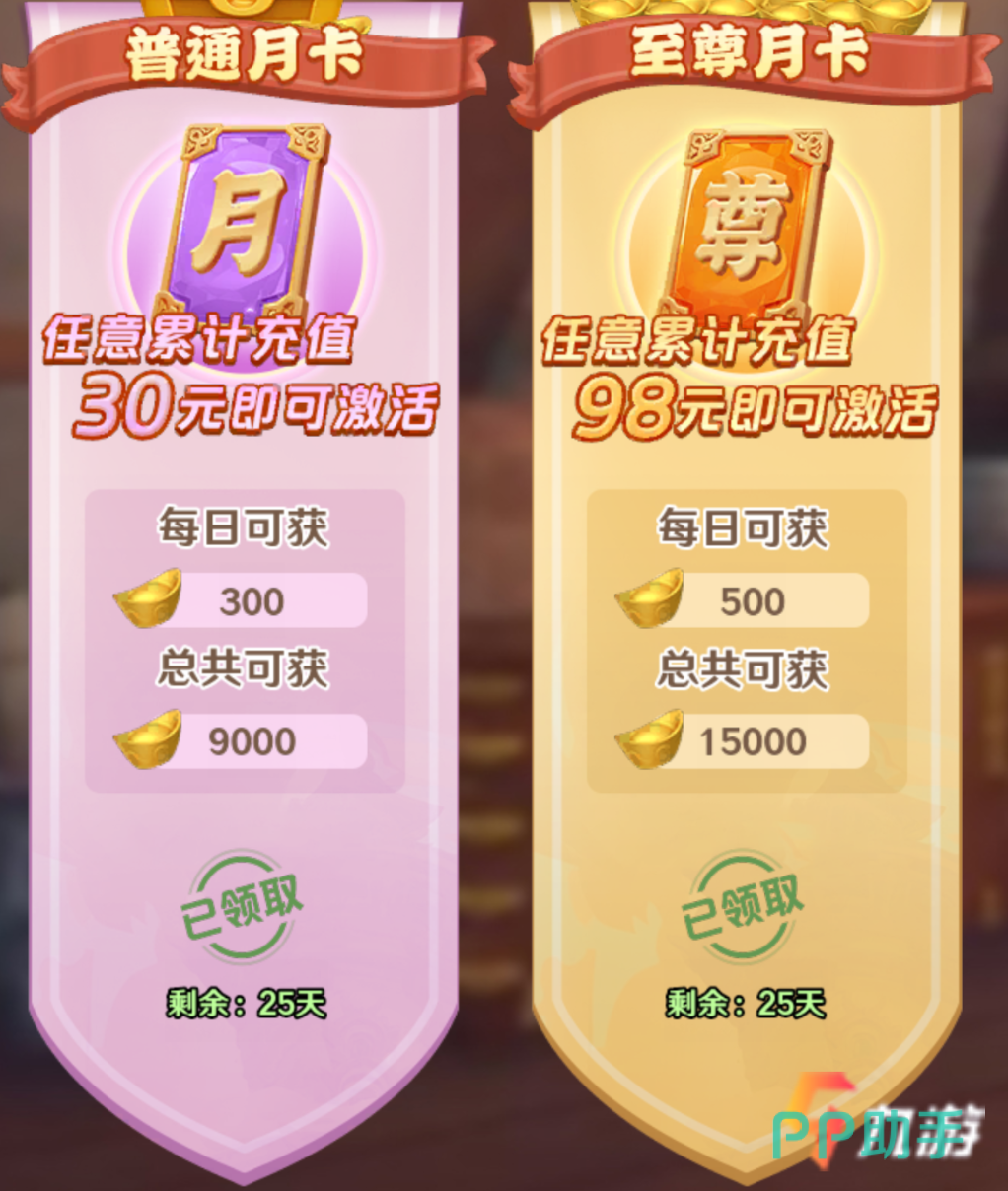 月卡:无需额外购买,只要累计充值就能自动激活,建议是在购买了挂机特权的情况下再充值30元购买[每周招募礼包],将至尊月卡一起解锁,性价比会更高。