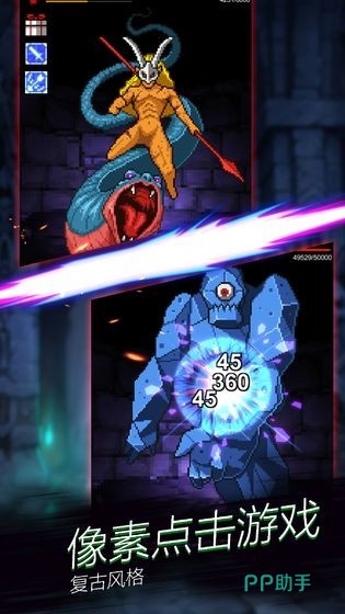 本作围绕英雄战斗系统深度构建,所有普通攻击与技能触发均依赖实时点击操作;点击频率直接决定单位时间内造成的伤害总量。游戏提供六种职业选择,每种职业配备三种专属必杀技,针对不同怪物类型进行了差异化数值设计。敌方单位将主动使用本体技能进行无差别范围打击。武器可经由进阶系统升格为神器,并额外激活一项神级被动效果。