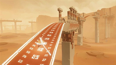 这款由thatgamecompany打造的经典作品,以极简角色设计与沙丘起伏的辽阔地貌构建出极具仪式感的旅程。玩家操控一位裹着长袍的旅者,在无字幕、无UI干扰的环境中穿行于遗迹、雪原与星穹之间。动态配乐随场景与动作实时变化,飞行系统轻盈流畅,支持跨平台匿名联机——仅靠吟唱与奔跑即可与另一名玩家建立信任、协作跨越险境。其哲学性叙事与留白式表达,使其长期位列“最值得静心体验的游戏”榜单前列。