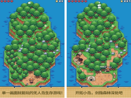 采用经典像素美术风格的沙盒生存手游,拥有程序生成的大型岛屿地图。玩家需从零开始收集木材、石材与食物,逐步解锁工具、建筑与探险装备。地图含森林、洞穴、海滩与隐藏遗迹等多层区域,支持昼夜循环与天气变化,探索过程伴随随机事件与解谜要素,节奏舒缓但内容密度充足。