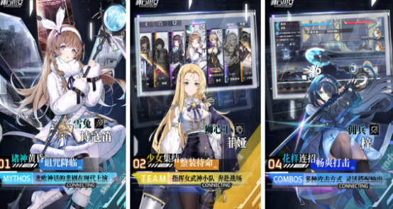 本作构建于近未来科幻语境,界面采用极简线条与冷色调设计,突出科技感与秩序感。角色立绘由专业画师操刀,细节丰富;战斗中则以Q版比例呈现,配合高速位移、空中连击与场景互动跳跃,融入跑酷式移动逻辑。三人小队需协同完成连段衔接与技能释放时机把控,操作反馈灵敏,打击节奏明快,其融合动作性与策略性的设计思路,与《兵器少女》对操作响应与小队协作的双重强调形成呼应。