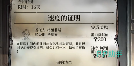 通过对话可以领取到一个任务,任务中会让玩家在35天内前往北美圣胡安商会,这35天的准备时间很长,拥有充足的时间去做准备。所以在这个阶段还没有开启这地图的玩法也不用担心,继续正常去过剧情就可以了。