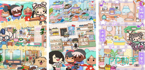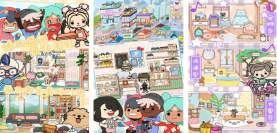 以住宅区为核心场景,内置公寓楼、别墅、商铺等多种建筑类型。玩家可对任意房间进行个性化装修,包括墙面颜色、地板材质、家具搭配及软装陈列,所有物品均免费开放使用,无内购或等级门槛。支持多房间同步编辑与角色入住管理,鼓励儿童实践空间规划与审美判断能力。