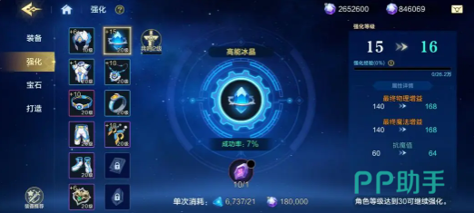 强化成功率随等级提升呈阶梯式下降。1–10级成功率较高,操作容错空间大;11–15级需谨慎规划,此区间开放五连强化功能,显著提升操作效率;15级以上强化则需角色等级达到30级方可解锁。特别注意:10级以上强化将默认消耗非绑定魔晶,系统不作二次确认。一键强化易导致绑定资源误用,务必切换至手动模式逐次操作。幸运道具适用范围为10–24级强化,使用后可使单次成功率翻倍,建议在关键突破节点(如12→13、14→15)精准投放。