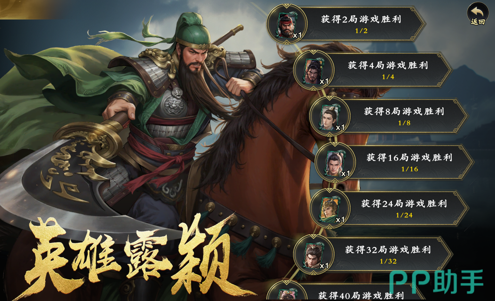 此为对局驱动型任务系统。玩家需完成指定场次(如累计胜利10局、20局等阶段性目标)后,方可解锁对应武将奖励。每档进度达标即发放完整武将,强调实战参与度,鼓励玩家熟悉技能机制与阵容搭配。