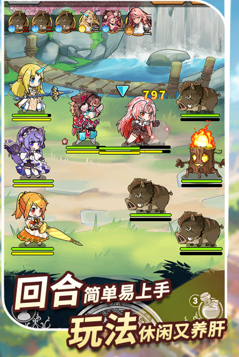 全2D日系美术风格,由曾参与多款知名IP开发的核心团队操刀制作。主线剧情围绕“绿色能源核心”展开,环境变化具象化呈现——森林枯萎、植被褪色等动态反馈强化生态危机代入感。战斗采用五人回合制,前排承担承伤职能,后排专注输出与辅助;光系与暗系角色组合可触发“混沌冲击”等跨属性联动技。校园经营模块允许玩家规划并升级魔法学院建筑群,高等级设施解锁道具合成台与稀有材料产出;连续点击钟楼可激活隐藏副本入口,增加探索趣味性与重复可玩价值。