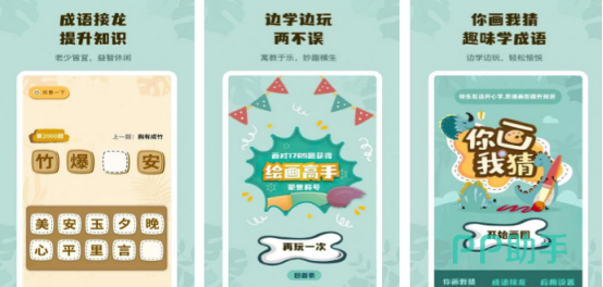内置海量常用成语词库,包含“亡羊补牢”“闻鸡起舞”等耳熟能详的经典条目。每个成语均配有释义说明与典故背景,辅以两种核心玩法:其一为“你画我猜”,一人绘图示意,另一人据图推理;其二为“成语接龙”,考验词汇积累与即时反应。图形化演绎方式降低理解门槛,助力孩子深度掌握成语内涵与使用语境。