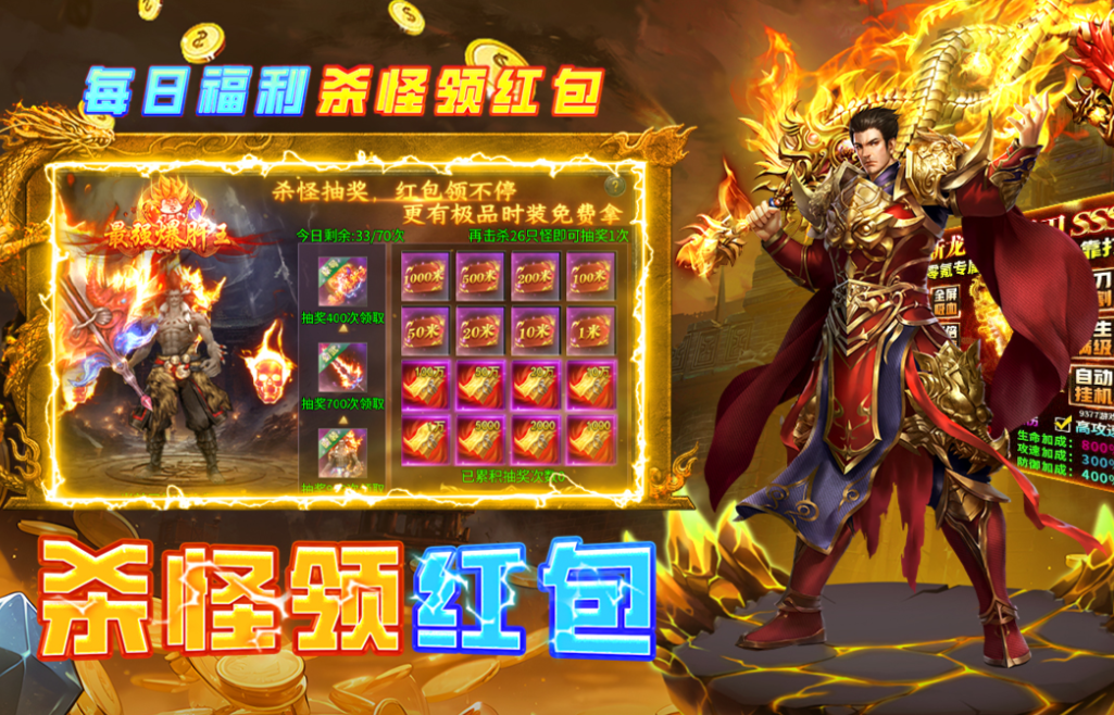 以纯正刷怪升级为核心玩法,怪物击杀后可随机获得时装碎片、红包积分及成长材料。掉落机制经过平衡调优,日常副本与BOSS挑战均保持较高装备产出效率。每日免费抽奖次数固定,无付费限制,助力零氪玩家稳定积累关键资源。整体美术风格融合暗黑魔幻基调与复古像素地图元素,兼顾视觉辨识度与怀旧情绪表达。