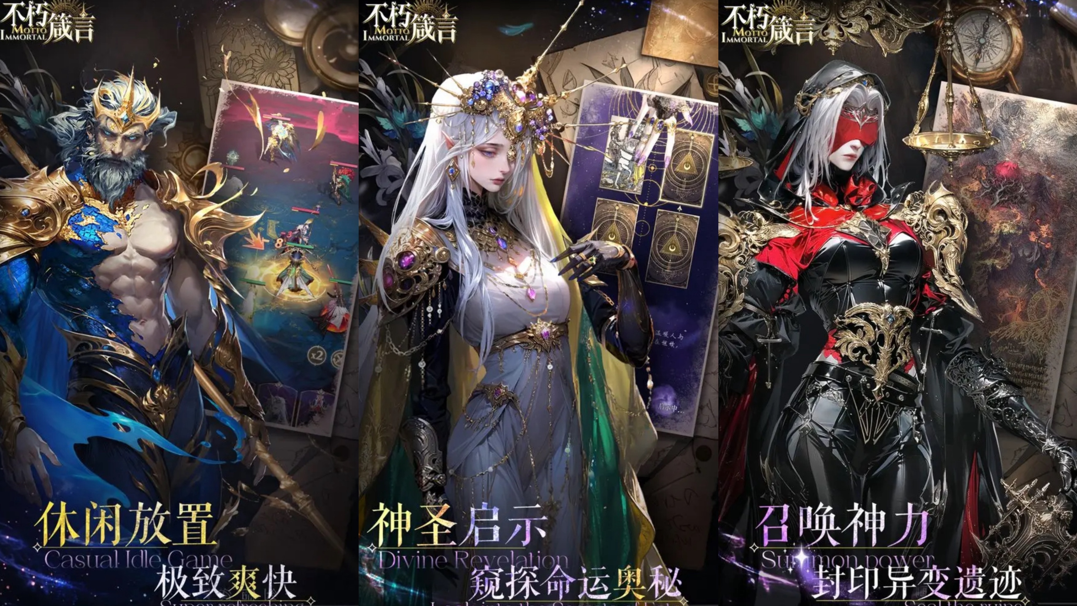 这是一款融合神秘学体系的回合制卡牌游戏。玩家以学者身份激活塔罗牌阵,召唤对应星象属性的神使单位参战。卡组构筑需兼顾星座相位加成、周易卦象克制与牌面数值平衡,面对不同副本敌人需预设三套战术卡组并实时轮换。立绘采用精细厚涂风格,每张卡牌均标注典籍出处与象征释义。战斗过程保留手动指令选择,支持延迟结算与连锁响应机制,在放置类框架下保留策略博弈空间。