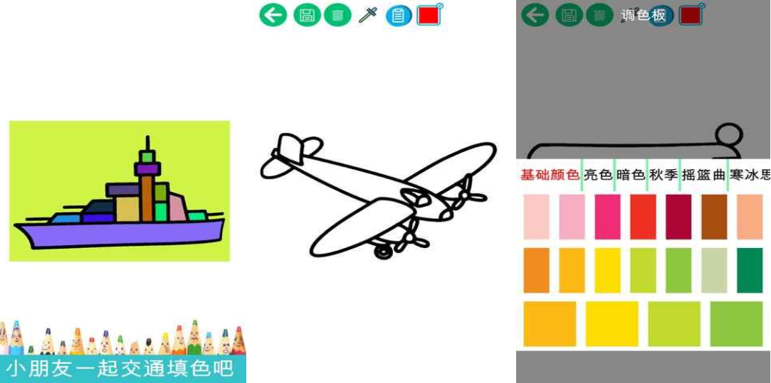 离线运行的创意涂鸦应用,内置50余种交通工具线稿(含消防车、地铁、直升机、货轮等),支持自由选色、区域填充与画笔粗细调节。所有图案经幼教专家审定,结构简洁、轮廓清晰,符合3岁儿童手部小肌肉控制能力。填色过程同步标注对应名称与基础属性(如“红色消防车”“有四个轮子”),实现美术表达与常识认知同步提升。