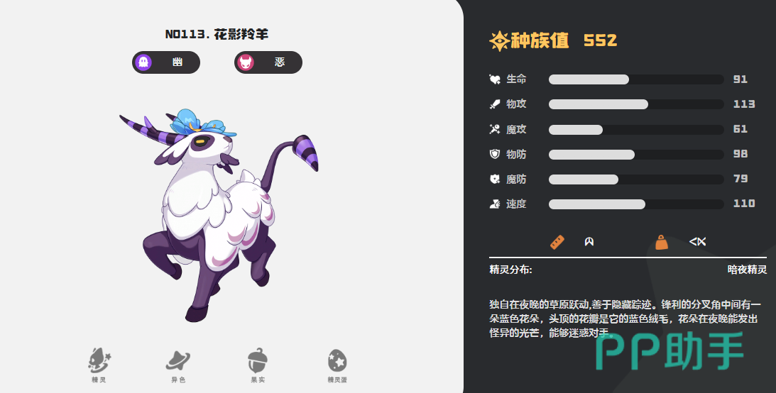 首先大家需要使用花影羚羊,这是一个幽灵和恶魔属性精灵,当他使用恶系技能时,可以让对方直接减少3点能量。技能配置推荐使用虚假破产,可以减少80%的伤害,让他的生存能力大大提升!还需要搭配恶意逃离,防御时可以让对方的能耗变高!还可学习欺诈契约,能够和对方互换buff状态!最后再学习一招恶能量,是主要的输出技能,可以对敌人造成高额物理伤害!