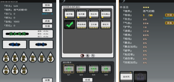 极简主义修仙模拟器的典范。界面仅保留时间推演、修为进度与心性提示三类核心信息,去除一切冗余视觉元素。修行节奏由玩家自主调控:闭关参悟需权衡时长与顿悟概率,外出历练要预判风险与机缘权重,炼化灵气则考验资源分配精度。每逢大境界瓶颈,系统将以内心独白形式抛出三重道心诘问,唯有契合自身修行理念的选择,方可破除心魔、渡劫飞升。