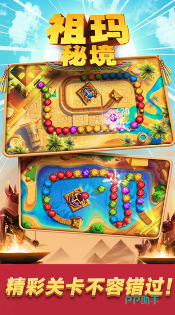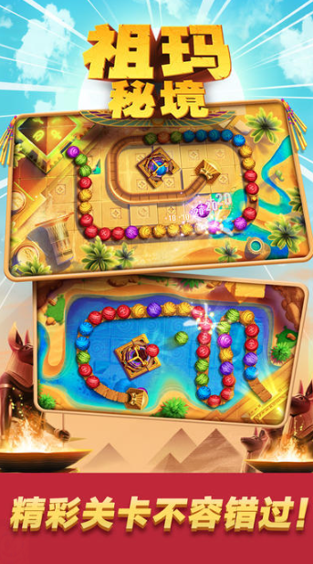 深度融入埃及文化符号,金字塔剪影、狮身人面像浮雕与异域风配乐强化主题代入感。发射器设计为金色圣甲虫造型,与整体美术风格高度统一。88个主线关卡由简入繁,轨道从基础直线逐步演变为多层分支与回环结构。减速球提供关键容错窗口,炸弹球与全色球协同使用可触发范围清除效果。经典模式侧重流程完整性,挑战模式增设限时条件与阶梯计分规则,对操作稳定性与反应速度提出更高标准。内置全球排行榜激发持续挑战意愿。