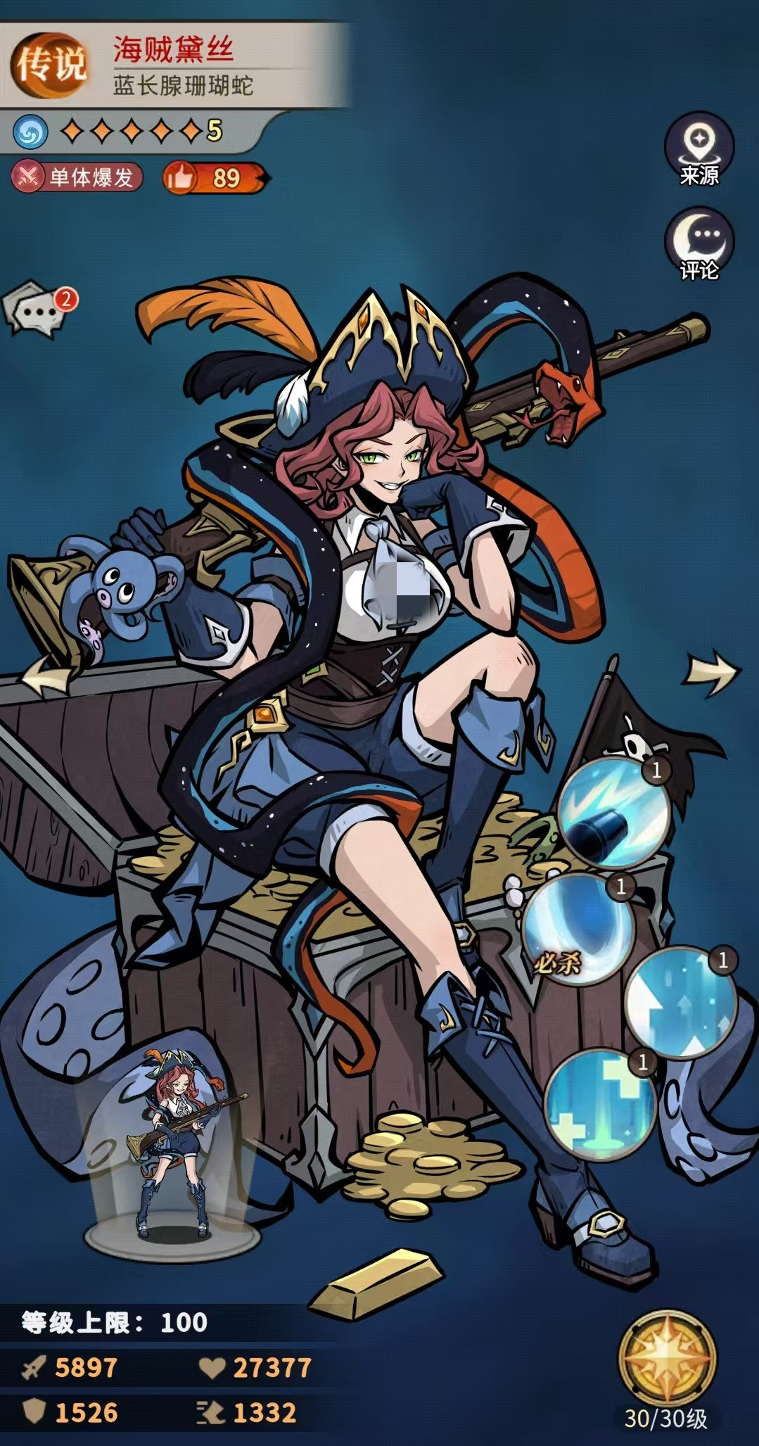 必杀技教母责罚,选择随机四个单位造成法伤,目标身上带有的寒冷层数越多,额外造成的伤害就越高。两个技能形成了一套小爆发的机制。被动是提升攻击力和生命值,以及对寒冷单位造成伤害提升和暴击提升,对冰冻单位造成的伤害提升和暴击提升。在技能效果方面,虽然有群体伤害,但是系数并不高,最关键的是附加的寒冷和冰冻,这才是大家选择它的最主要原因。阵容搭配方面其实可选性不高,就是走水系冰冻路线。具体的组合就是教母菲娅、海贼黛丝、柴郡猫、冰雪公主和小小白雪。