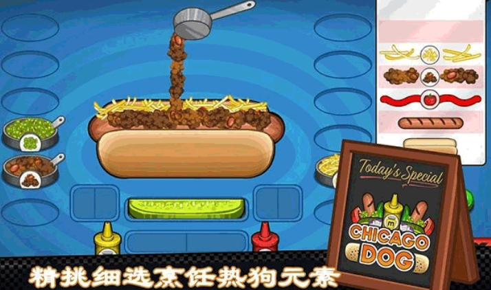 围绕经典美式热狗展开的轻量级烹饪模拟游戏,融合食材搭配、火候控制与订单节奏管理三大核心机制。提供洋葱、酸黄瓜、特制酱料等数十种原料组合,不同配比直接影响顾客满意度与复购率,卡通画风下隐藏着严谨的口味反馈模型。
