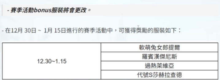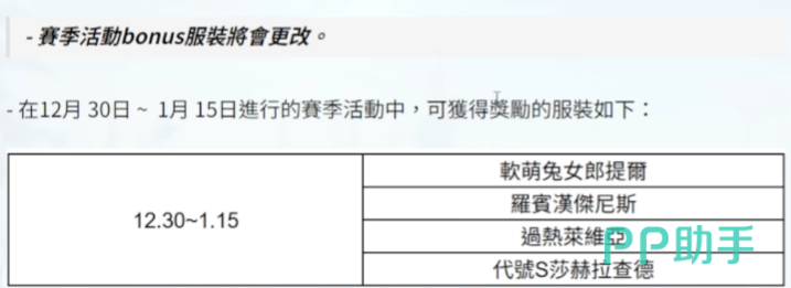 四、限定赛季皮肤登场:活动期间(2025年12月30日—2026年1月15日),可获取软萌兔女郎提尔、罗宾汉杰尼斯、过热莱维亚、代号S莎赫拉查德四款主题时装,风格多元,适配不同角色气质。