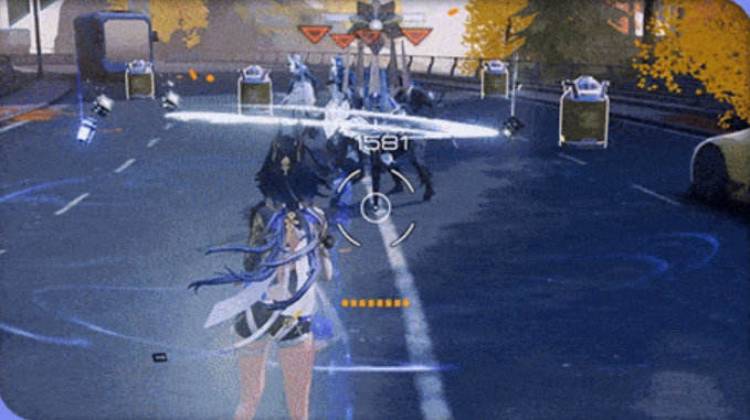 场上存在基座时,她可以对其长按使用该技能位移到基座附近,对基座进行强化,使其进入“激绽”状态,让最终造成的伤害提升。普通射击的子弹穿过“臆莲基座”时会对其造成治疗效果,当该角色不处于场上时,基座与无人机都会进入休眠。