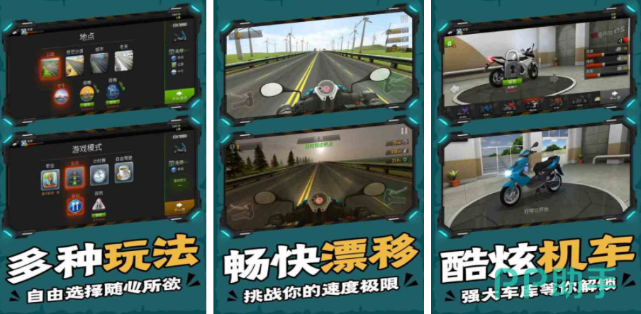 除汽车类竞速外,摩托车题材同样具备强劲表现力。以下两款作品以差异化视角诠释速度本质,拓展移动端竞速体验维度。