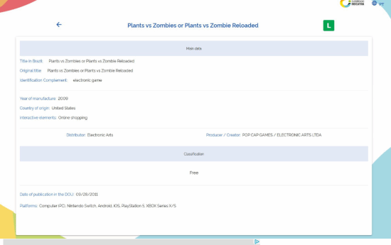 今年3月,经典游戏《植物大战僵尸》的重制/复刻版信息(Plants vs Zombies RELOADED)出现在了巴西评级网站上,显示被评为L级(全年龄),将登陆PC、iOS、Android、PS5、Xbox Series X/S与Switch平台。