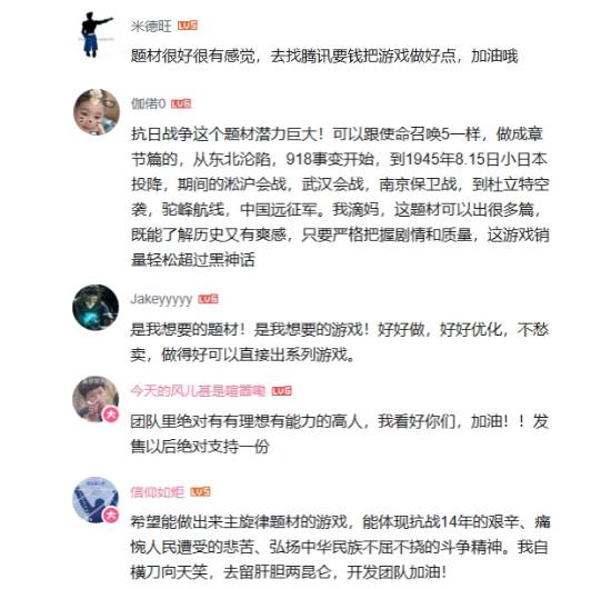 评论区中,许多玩家对本作感到期待,尤其是这种正能量题材,希望能有个优秀的故事和精良的玩法。