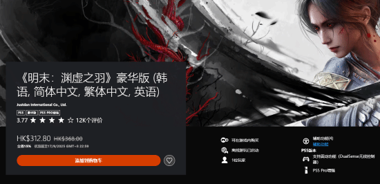 《明末:渊虚之羽》发售至今已有一段时间,游戏当前在PlayStation平台开启了折扣活动,豪华版原价为368港币,现价为312.80港币,优惠截止日期为9月17日22:59分.