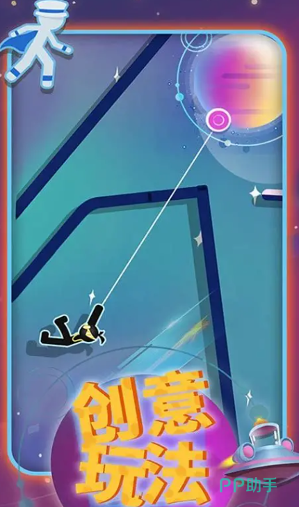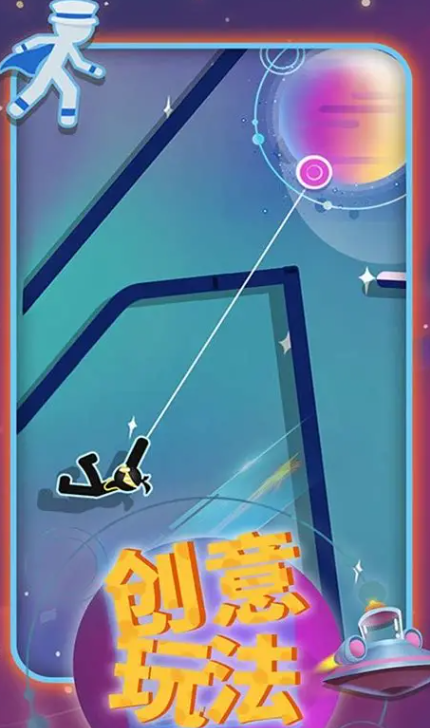 本作以极简风格的火柴人为主角,依托流畅的线条动画与动态物理反馈构建城市高空穿梭体验。玩家需实时调节绳索长度、摆动角度与起跳时机,在密集楼宇间完成高精度位移。场景中融入大量可交互环境细节,不同绳索类型附带专属光效与音效反馈,显著提升每次跃迁的操作质感与视觉辨识度。