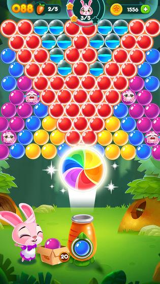 在经典泡泡龙玩法基础上深度融合兔子IP,界面色彩层次更丰富,视觉表现更具亲和力。游戏中泡泡自上而下持续下落,玩家操控兔子发射同色泡泡,达成三连及以上即可触发消除。特殊组合可激活增益效果,例如延缓下落速度、实现全屏清空等。关卡结构呈阶梯式递进,后期难度显著提升,兼顾新手引导与高阶挑战需求。