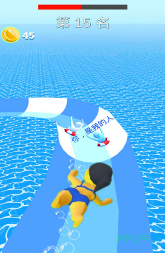 以水上乐园为背景的多人同屏竞速游戏,采用低多边形3D建模,画面通透明亮。玩家扮演不同造型的小飞侠,在螺旋滑梯、喷泉赛道与浮岛跳台间展开追逐。体感操控灵敏,轻微晃动设备即可实现左右偏移与腾空翻转。内置道具系统包含干扰型水雷、临时无敌泡泡、反向滑行陷阱等,策略性强且无攻击性伤害设定,全程聚焦欢乐互动与即时反馈。