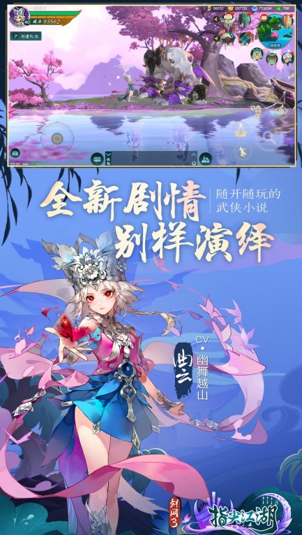 由端游《剑网3》衍生的手游版本,延续其深厚的武侠世界观与美术风格。游戏采用动态光影渲染技术,实现山川云雾、飞檐斗拱、四季植被的细腻呈现。轻功系统支持多段跳跃、壁面蹬踏与空中转向,配合全景地图探索机制,可抵达悬崖秘洞、浮空岛屿等隐秘区域;藏宝图、机关谜题、NPC支线共同构成非线性叙事网络,增强探索反馈与沉浸感。