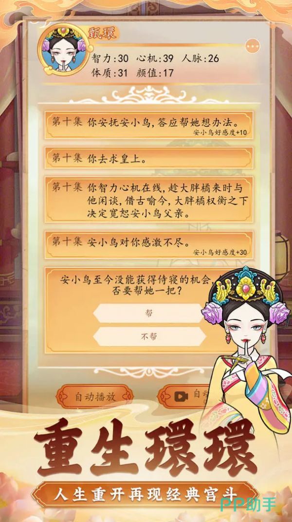 基于古典宫廷生态重构模拟逻辑,角色系统严格遵循身份等级、出身背景、才艺专长三维建模。玩家需在礼制约束下开展人际互动,平衡恩宠分配、子嗣培养、派系维稳等多重目标。宫斗机制非单一数值对抗,而是融合奏对表现、节庆献礼、密报研判、医案干预等复合操作,辅以古风UI与考据服饰设计,营造强沉浸式历史生活场域。