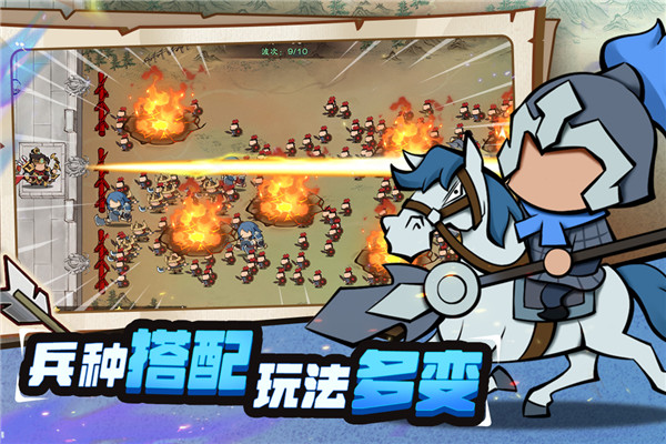 该系列续作延续硬核塔防基因,在防御工事布局层面保留高自由度操作逻辑。玩家需依据敌军兵种特性(如骑兵突进、弓兵远程压制、器械破甲)匹配对应防御塔类型与升级路线。武将系统深度绑定塔防机制——关羽可部署为近战拦截塔,诸葛亮则转化为范围控场型法术塔,所有角色均还原其历史职能定位。关卡难度曲线平滑递进,后期引入“双路进攻”“移动路径变更”等变量,持续考验布阵逻辑与资源分配精度。
