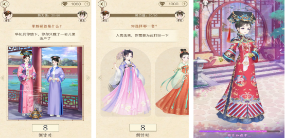 以古典宫廷美学为基调,还原细腻考究的古风视觉体系。玩家从初入宫闱的低阶侍女起步,通过应对复杂人际关系、参与换装比拼、解锁冷宫支线等方式逐步晋升。服饰系统涵盖上百套原创古装,支持自由搭配与细节调整,兼顾历史韵味与现代审美表达。