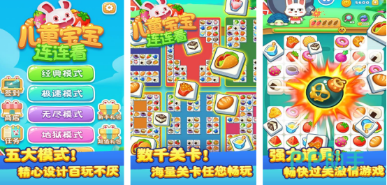 本作提供经典、极速、闯关、挑战与无尽五大玩法模式,内置超300个原创关卡,难度梯度合理,持续激发探索欲。界面采用高饱和度果蔬图鉴设计,如苹果、香蕉、胡萝卜、西兰花等,通过触控连线匹配相同元素完成消除。每关设定明确目标——达成指定分数、清除特定数量图案或限时通关,达成后自动解锁进阶关卡,有效训练观察力与反应速度。